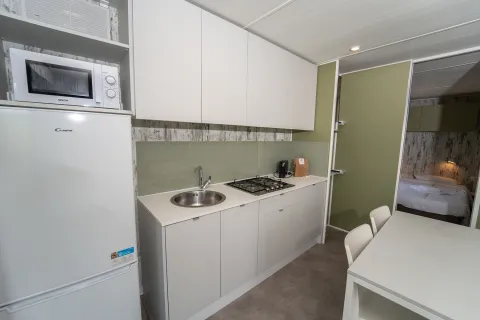 La Next XL Loggia è la scelta perfetta per una vacanza in famiglia o per una fuga romantica di coppia. Questo spazioso e accogliente alloggio offre una camera matrimoniale, una seconda camera con due letti singoli e uno ribaltabile, oltre ad un ampio soggiorno con cucina super accessoriata. Il bagno è completo e moderno, appunto per garantire il massimo comfort a tutti gli ospiti. Gli esterni sono impreziositi dalla veranda coperta, l’ideale per rilassarsi godendo dell'ottimo clima italiano. In questa sistemazione purtroppo gli animali non sono ammessi, ma potrai comunque usufruire dell’accesso alle piscine e dell’animazione, due servizi sempre inclusi nel prezzo!